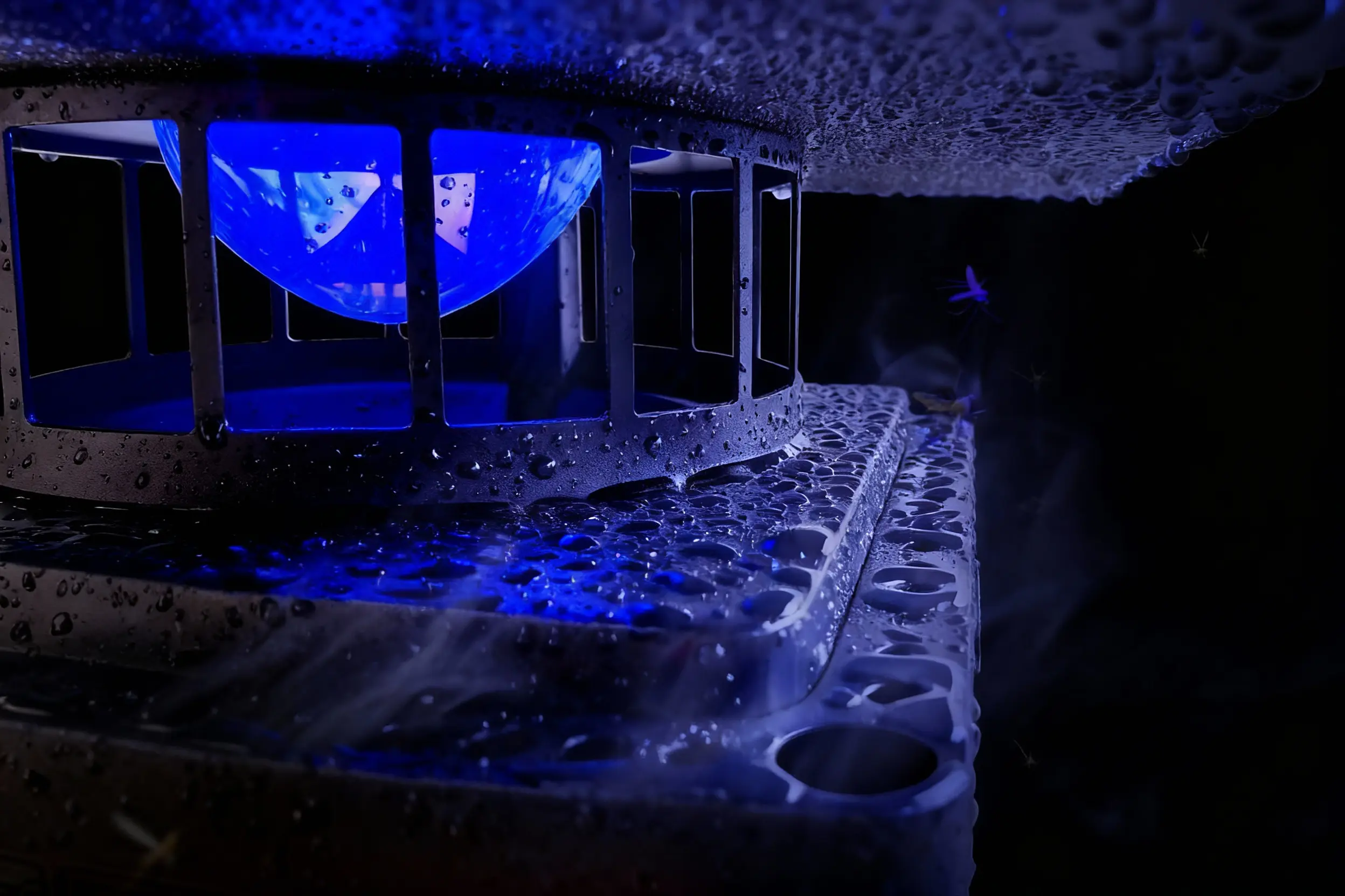 Front and side integrated heaters simulate human body warmth (37–38°C), while the built-in water reservoir releases moisture to mimic the humidity of human breath — greatly enhancing mosquito attraction efficiency. Add water into the heater for maximum performance. Non-solar edition only.
