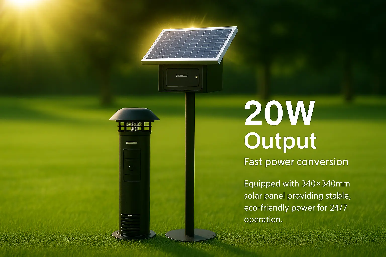 Choose to equipped a high-efficiency 20W solar panel with built-in rechargeable battery, providing stable, eco-friendly power for 24/7 operation with no external wiring required. Ideal for backyard, Playfield and any open ground.