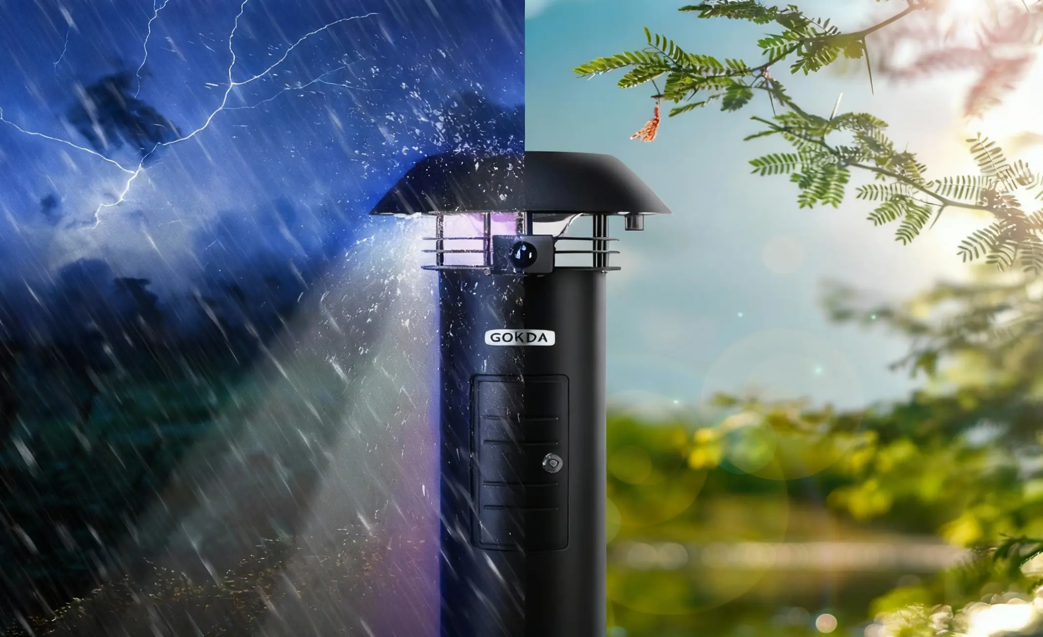 The built-in light-sensitive system detects natural sunlight and automatically activates the device at night or in low-light conditions.